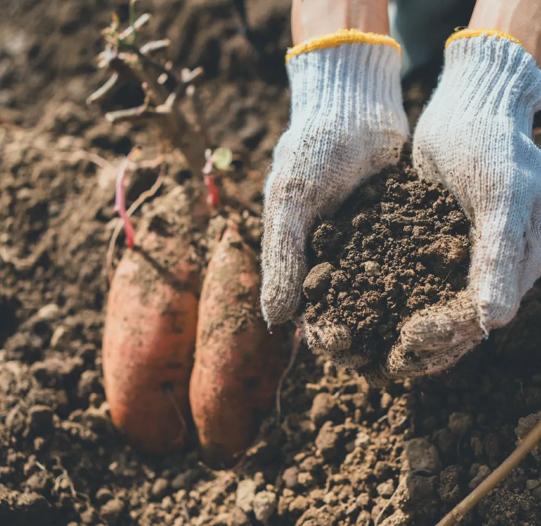 茨城県鉾田市の豊かな大地で、私たちはまず「土」と向き合います。潮風を感じる畑で、堆肥を重ね、微生物の力を活かし、ふかふかとした土を育てることからすべてが始まります。水はけと保水のバランスを整え、さつまいもがじっくり糖を蓄えられる環境をつくる。手間を惜しまない土づくりこそが、自然な甘さと奥行きのある味わいを生み出す、おみ農園の原点です。