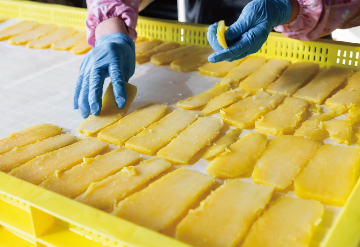 収穫したいもはすぐには加工しません。温度と湿度を整えた環境で寝かせ、ゆっくりと糖度を高めていきます。時間を味方につけることで、自然な甘さが引き出されます。