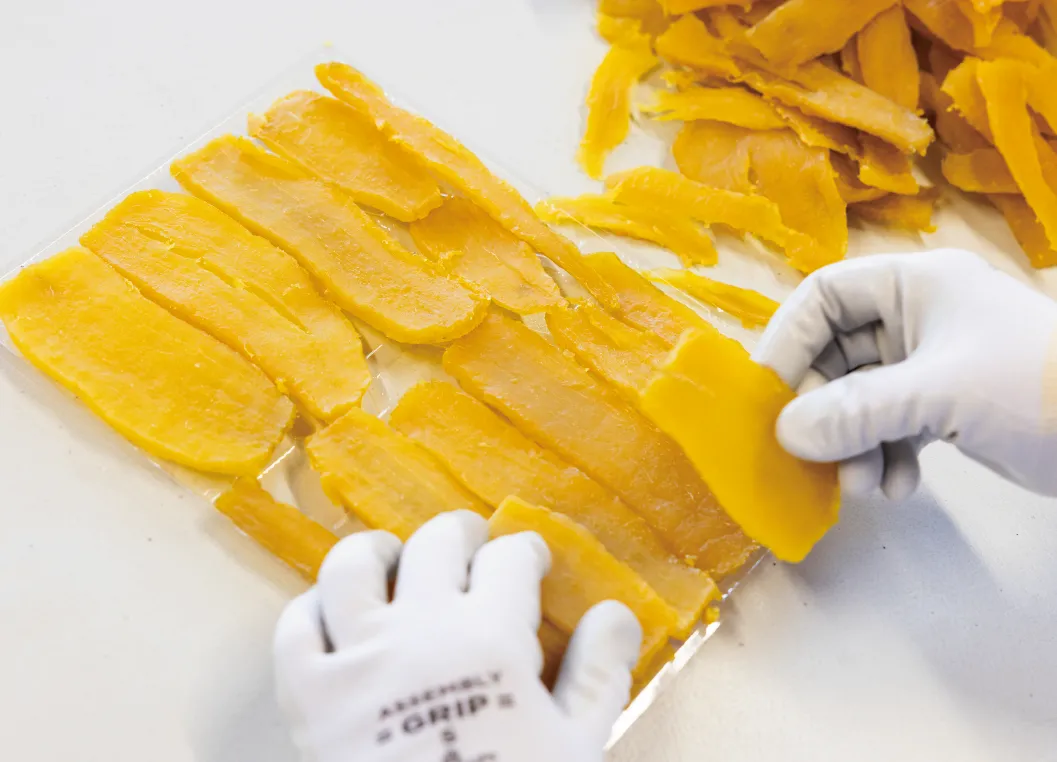 色味や形、やわらかさを一枚ずつ確認し、基準を満たしたものだけを袋詰めします。最後まで妥協せず、安心して手に取っていただける一品へと仕上げます。