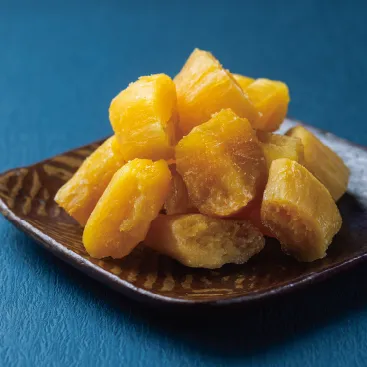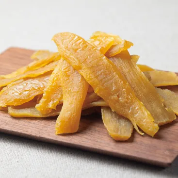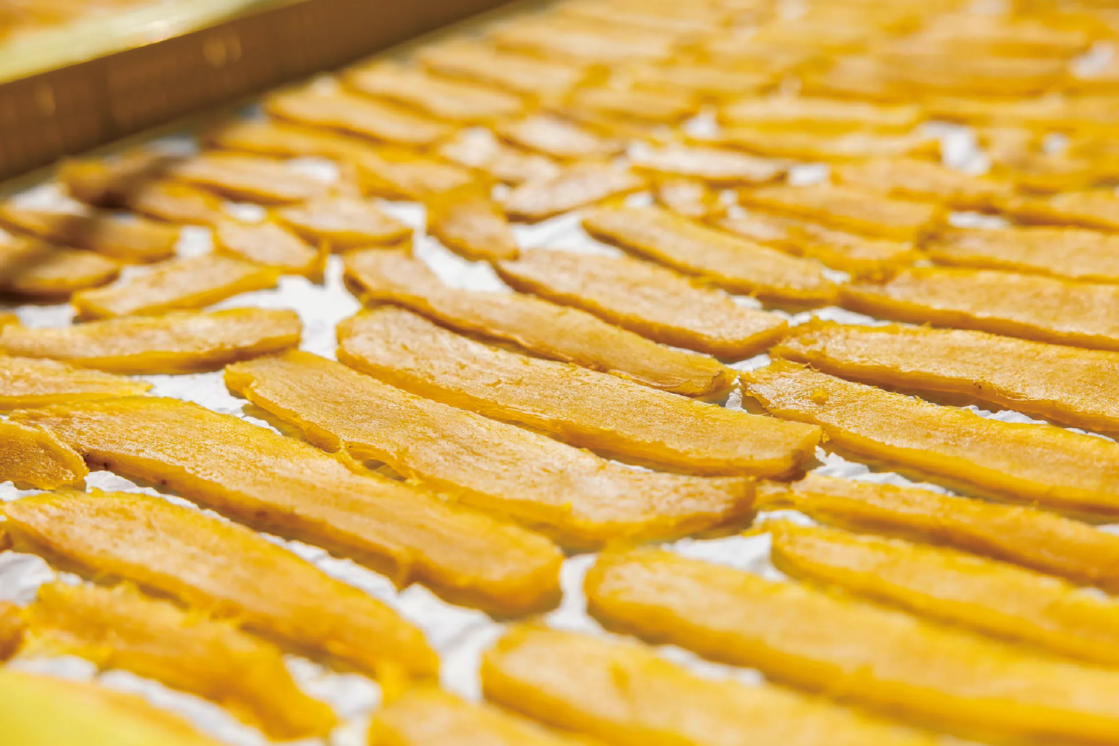 さつまいもを食べやすいスティック状にカットして天日干ししました。端材を使わず1本ずつが適量に調整されていて食べやすく、ちょっとした間食にピッタリです。