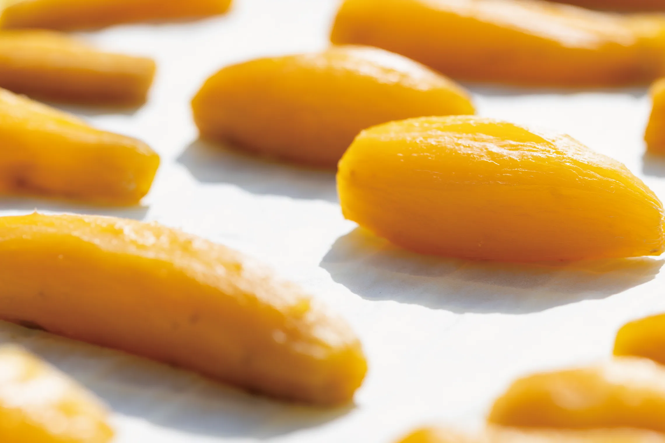 並べたおいもに、太陽の光をたっぷり浴びせます。日当たりを考えて時折位置を変え、様子を確かめる日々。自然の力にゆだねながら、ゆっくりとうまみを凝縮させていきます。